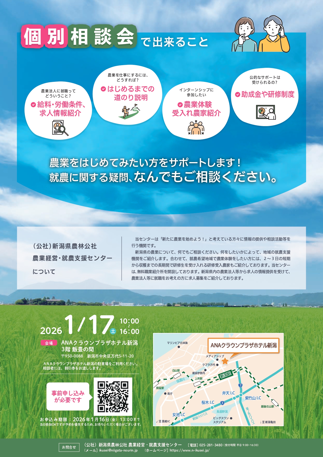 新潟県の農業について、何でもご相談ください。たくさんのご参加をお待ちしております!